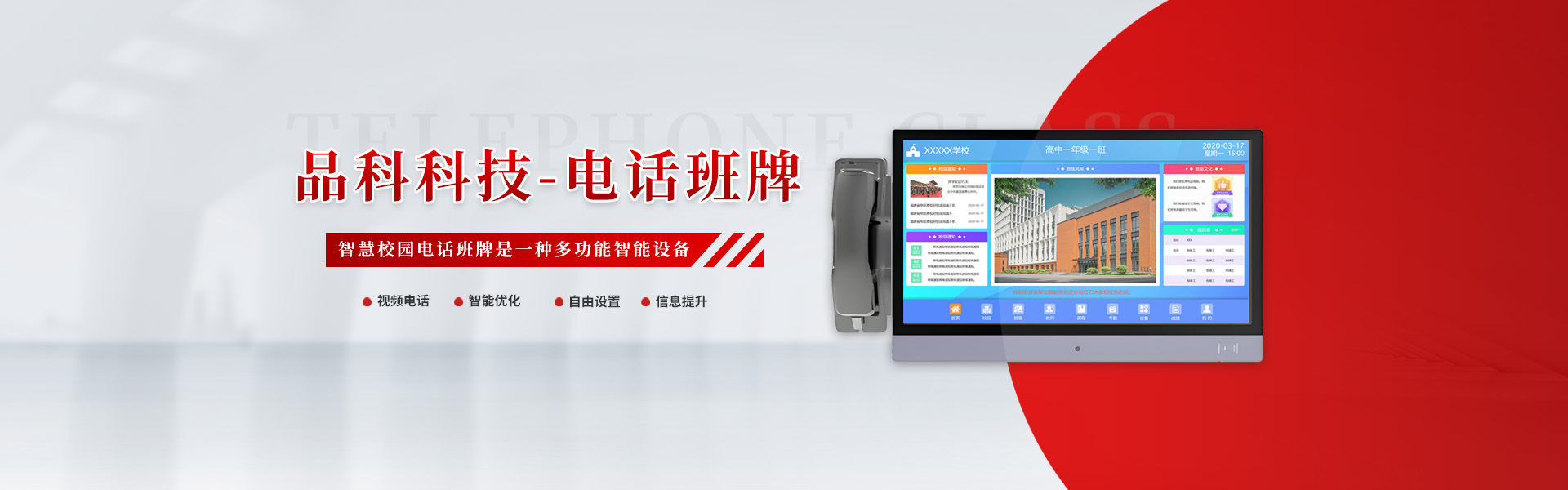 熱門關(guān)鍵詞: 校園親情電話機(jī),校園可視電話機(jī),親情視頻電話機(jī),學(xué)生宿舍專用電話機(jī),智能電子班牌,電話班牌觸摸一···